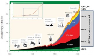 En los últimos 150 años el mundo ha sufrido la transformación más radical de su historia: primero con la llegada de los motores de vapor y, más tarde, con los de explosión en sus dos principales versiones (Otto y Diesel). La máquina de vapor inicialmente funcionaba con madera, pero pronto pasó a hacerlo con carbón, debido a que el ritmo de explotación de los bosques se hizo insostenible en la Inglaterra del siglo XIX.