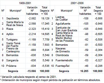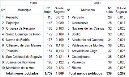 Ayllón), se encontraban entre los mayores de la provincia en el año 1900 y sin embargo, ninguno de ellos conserva estas posiciones en el año 2008.