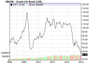 Como pasó durante la última gran recesión, en 2008, el precio del petróleo ha bajado mucho, cotizándose en la actualidad el barril de Brent por debajo de los 30 dólares, menos incluso de a lo que llegó en 2008. Tal caída precipitada traerá consecuencias muy negativas para el sector, pues al contrario de 2008, cuando el precio del petróleo cayó fuertemente de julio a diciembre para luego ascender relativamente rápido y estabilizarse en unos 100 dólares el barril a finales de 2009, en esta ocasión la bajada hace más de un año que dura y está minando la economía de los países productores de materias primas y no sólo de petróleo. Por ejemplo, en los EE.UU. acaba de quebrar la segunda mayor empresa productora de carbón de ese país, y no precisamente porque los EE.UU. se estuvieran descarbonizando sino porque sigue la tendencia contractiva general. Pero donde se huele a sangre en los EE.UU. es en el sector de la producción de petróleo, y especialmente en aquellas empresas que habían apostado fuerte al fracking. Aparte de la próxima quiebra de Chesapeake, una empresa de mediana importancia, que muchos analistas descuentan para principios de 2016 (sus acciones han caído un 80% durante el último año, en paralelo a sus ingresos), otras importantes empresas del sector podrían quebrar durante 2016. Aún no se apunta a ninguna de las grandes, pero obviamente van a sufrir durante este año y en paralelo reducen sus gastos para intentar sobrevivir el mayor tiempo posible.